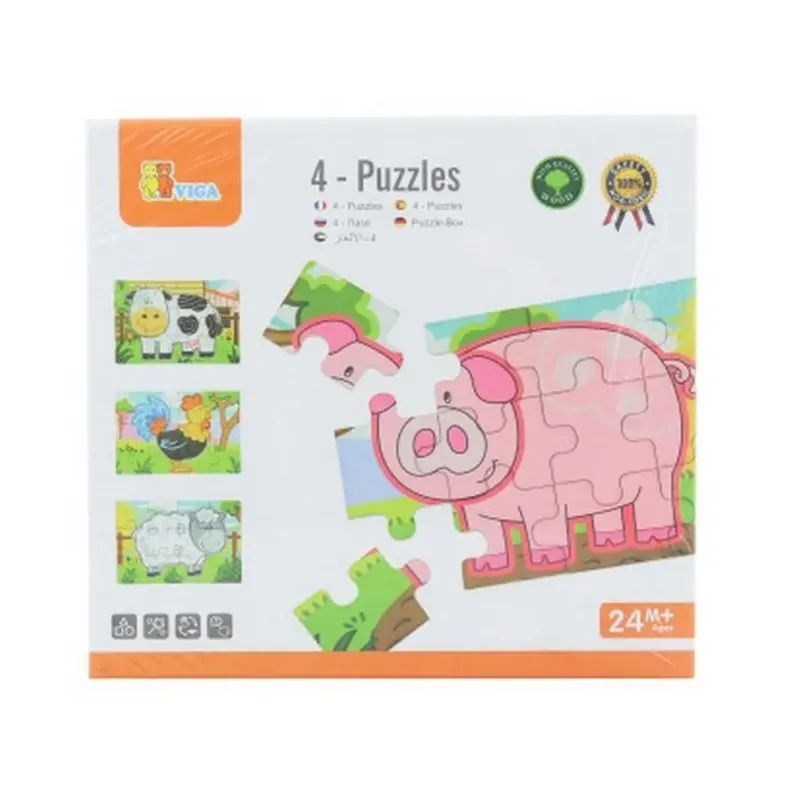 Drevené puzzle s motívmi zvieratiek z farmy.