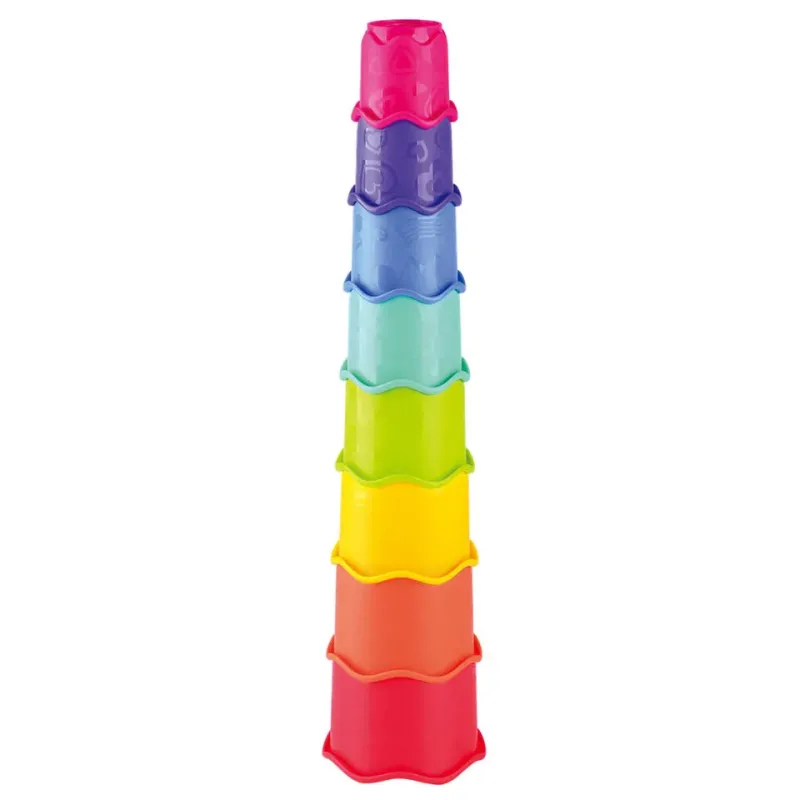Skladaním pohárikov rozdielných veľkostí na seba deti trénujú jemnú motoriku a manuálnu zručnosť.