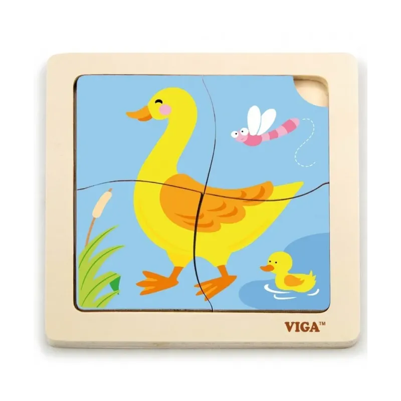 Viga Drevené puzzle Kačička 15x15cm Jednoduchá vkladačka s drevenými dielikmi s motívom leva.
