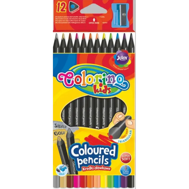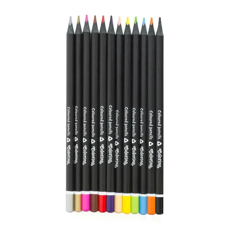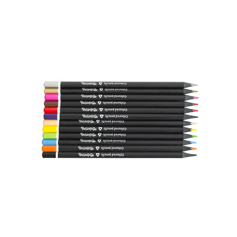 Elegantné pastelky v čiernom dizajne s farebnými lakovanými koncovkami.Súprava je navyše doplnená o strúhadlo a obojstrannú pastelku zlatej astriebornej farby.