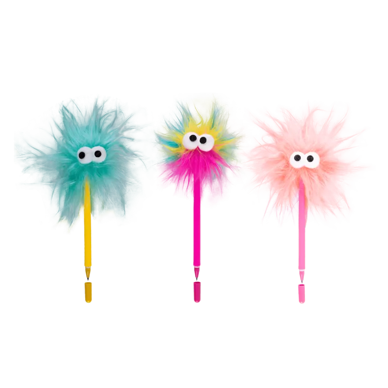 Roztomilí chlpáči s vyvalenými očami, ktorí sa stále pohybujú do rytmu tvojho písania. Matné silikónové telo pera skvele padne do ruky a prináša pohodlný úchop, ľahké uzatváranie pomocou viečka.