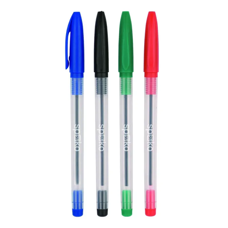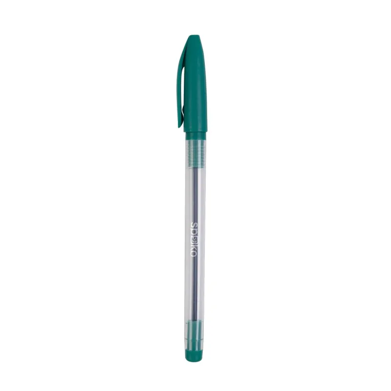 Jednorazové guľôčkové pero s priehľadným telom, ktoré umožňujekontrolovať množstvo náplne. Farba viečka zodpovedá farbe náplne.Tvarovaný úchop na pohodlné držanie. Tlačené logona tele.