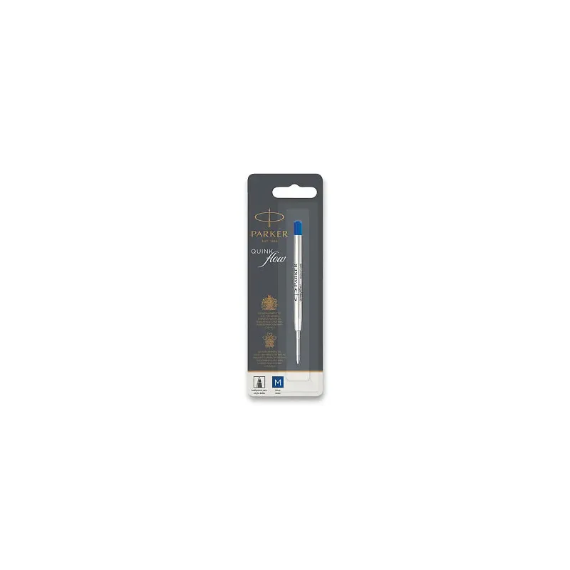 Náhradná náplň do guľôčkových ceruziek (guľôčkových pier, pier)Parker, šírka M (1 mm). Náplň je chránená viečkom vo farbe náplne.