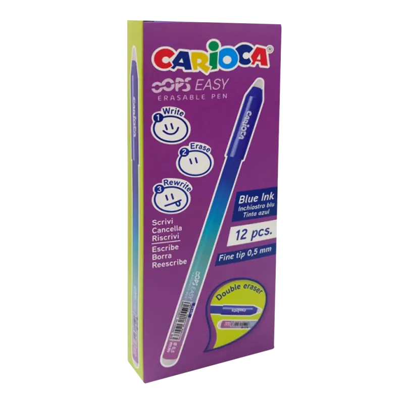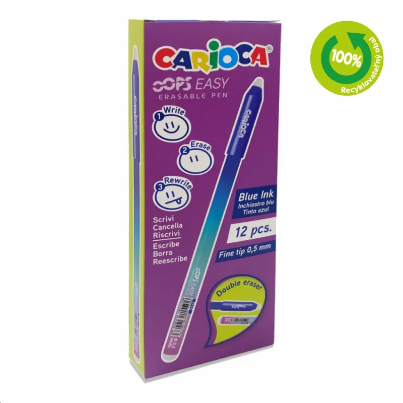 Píšte, gumujte a prepisujte úplne bez stresu. OOPS Easy je gumovateľnépero s termosenzitívnym atramentom na jednoduché a plynulé písanie.Dvojitá guma na viečku a koncovke na ľahké odstránenie textu bez žmolkov apoškodenia papiera. Perfektné do práce, školy aj na kreatívnezapisovanie.