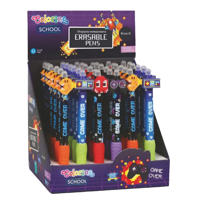Praktické gumovateľné perá pre deti s motívmi obľúbených hrdinov.Kvalitný atrament je možné v prípade potreby jednoduchovygumovať a prepísať.