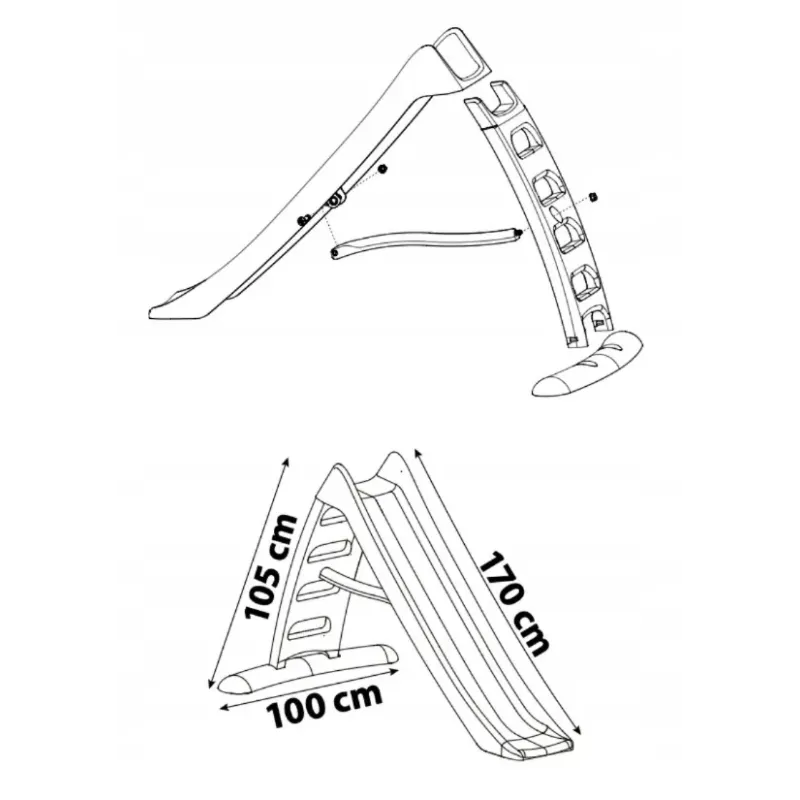 Mierny svah na konci sklzu zaisťuje „mäkké pristátie“ a bezpečnosť robustnej konštrukcie.Plastová šmykľavka Speed – stabilná šmykľavka pre najmenších, rýchla montáž bez použitia náradia, vyrobené v EU z vysoko odolného, stálofarebného plastu – odolné voči zmenám teplôt a slnečnému svitu.