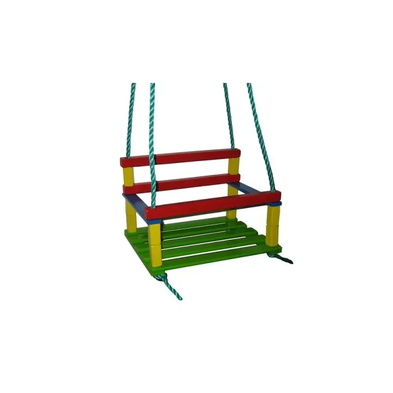 Drevená hojdačka farebná s ohrádkou Krásna farebná detská hojdačka s ohrádkou pre bezpečné hojdanie.