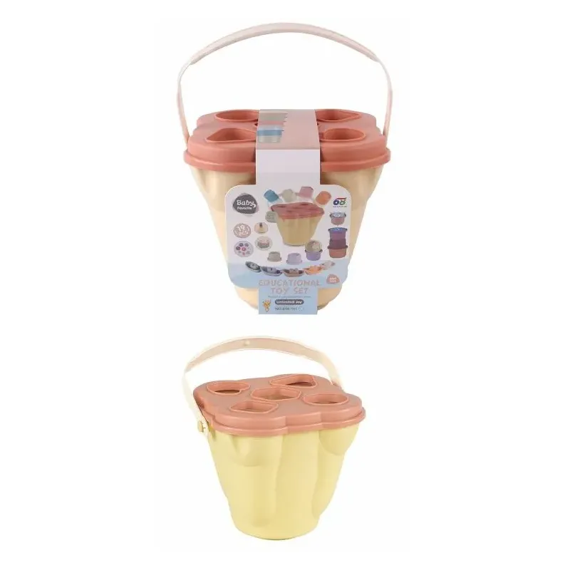 Rozmery vedierka 15,8 x17x17,8 cm.Obsahuje 5 ks vkladacích hračiek. 5 ks lodičiek 10,4x5,3 cm. 8ks kelímkov.