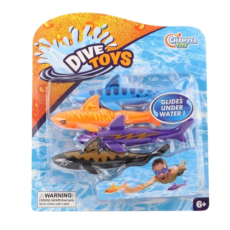 Zábavná sada žralokov, ideálna pre oživenie plávania a potápačského tréningu alebo ako hračka do vane.