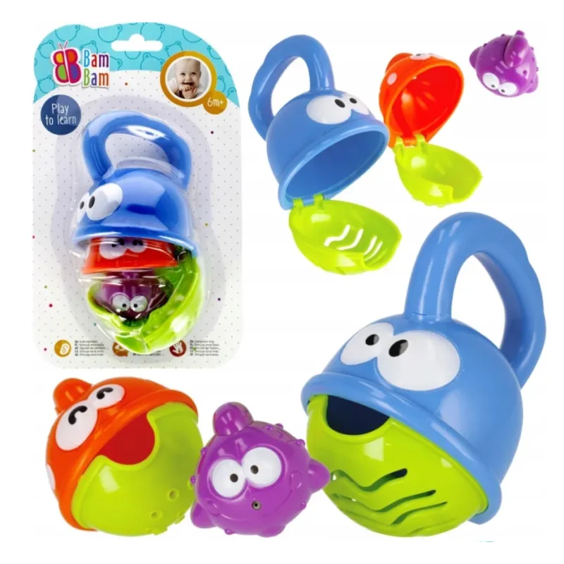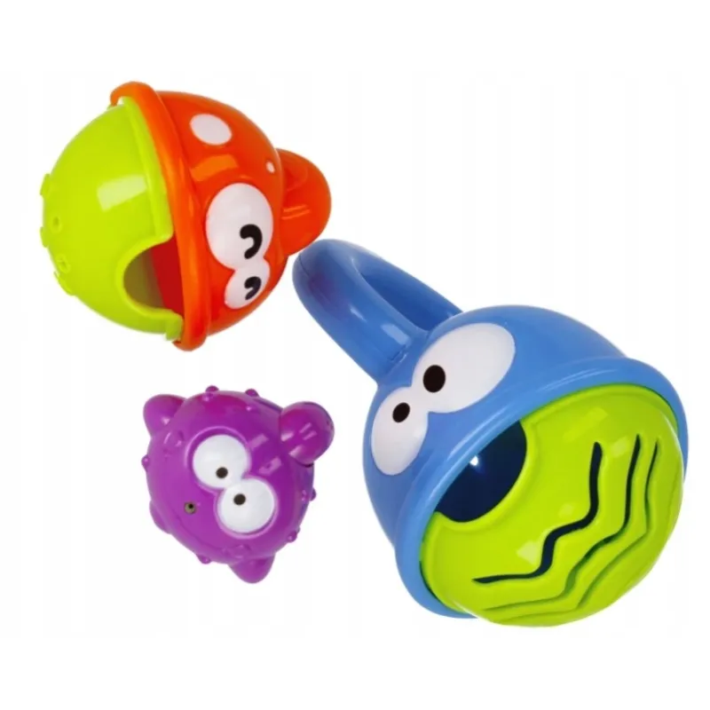 Jednotlivé kelímky - rybičky je možné do seba poskladať.Pri hre dieťa rozvíja jemnú motoriku, stimuluje rozvoj hmatu a zraku.