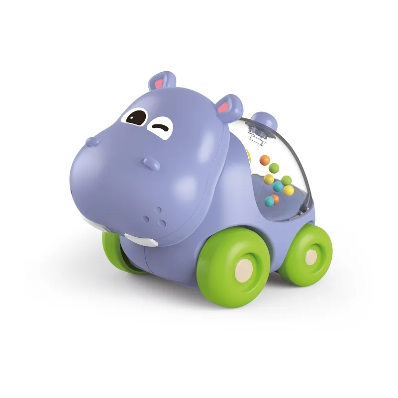 Hrkálka hroch na kolieskach.Rozmery hračky 8x11x9,2 cm.Pri jazde hrkajú.Vek 1+