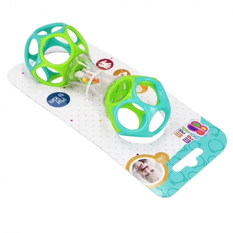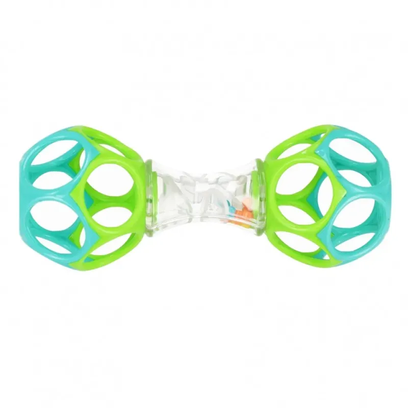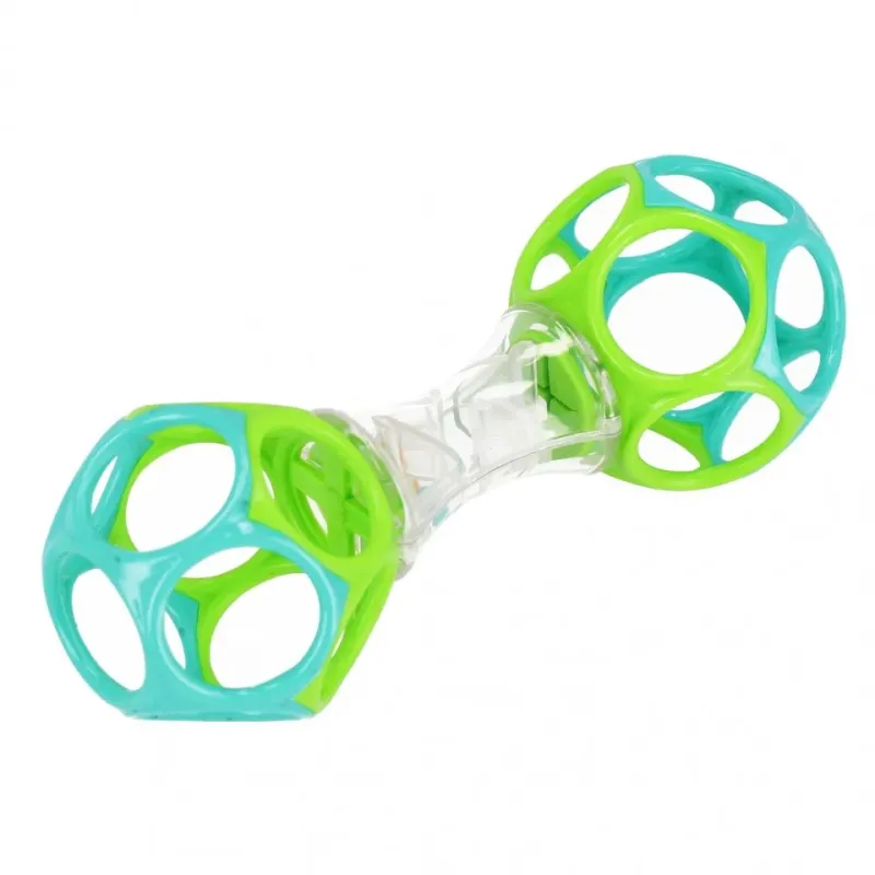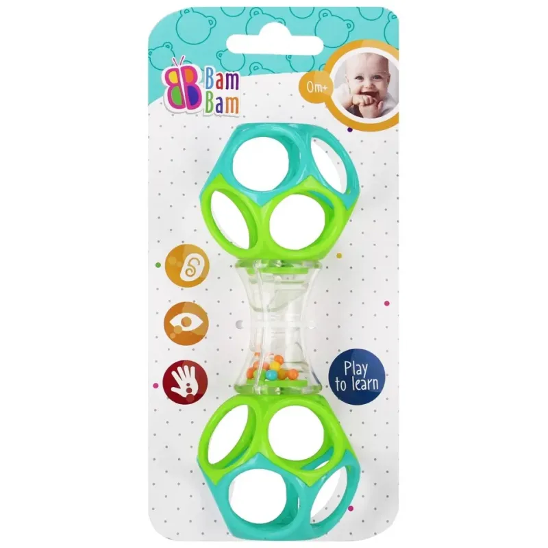 Táto farebná hrkálka v tvare činky je perfektnou hračkou pre najmenších, stimuluje zmysly a podporuje rozvoj koordinácie oko-ruka.