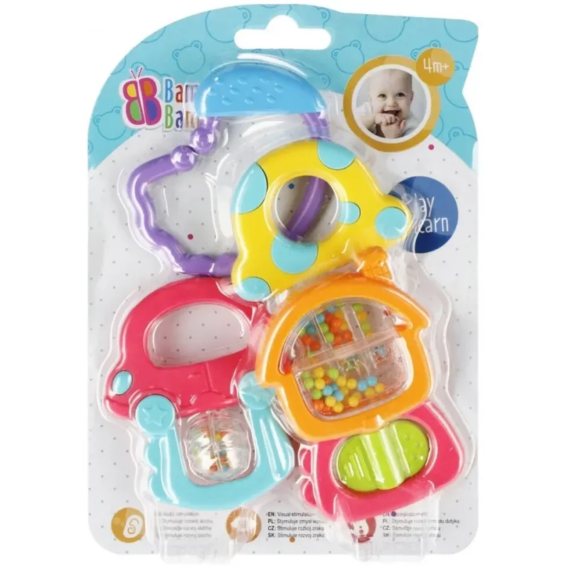 Vďaka jemným, žiarivým farbám, rôznym textúram materiálov a rozmanitému tvaru obsahuje interaktívne prvky, ktoré podporujú hru a zároveň stimulujú rozvoj zraku, sluchu a motorických zručností detí.Klip umožňuje jednoduché zavesenie na kočík alebo detskú postieľku.