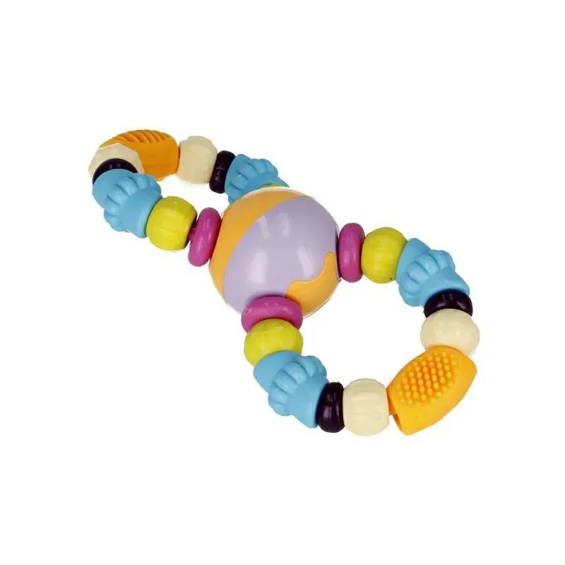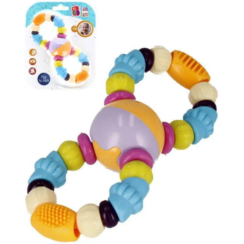 Intenzívne farby, pestrá textúra a tvar v podobe vtipných korálok robia z hrkálky výbornú edukatívnu hračku.Má interaktívne prvky, ktoré nabádajú batoľa k hre, stimulujú rozvoj jeho zmyslov zraku, sluchu a motoriky.Farebné korálky v pohodlnom tvare, ktoré uľahčujú uchopenie hračky a držanie v malých ručičkách.