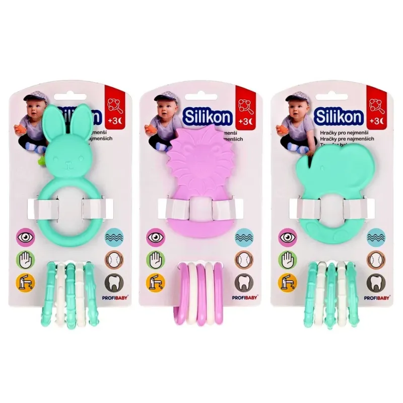 Hryzátko zvieratko je silikónové a prívesky sú plastové.
