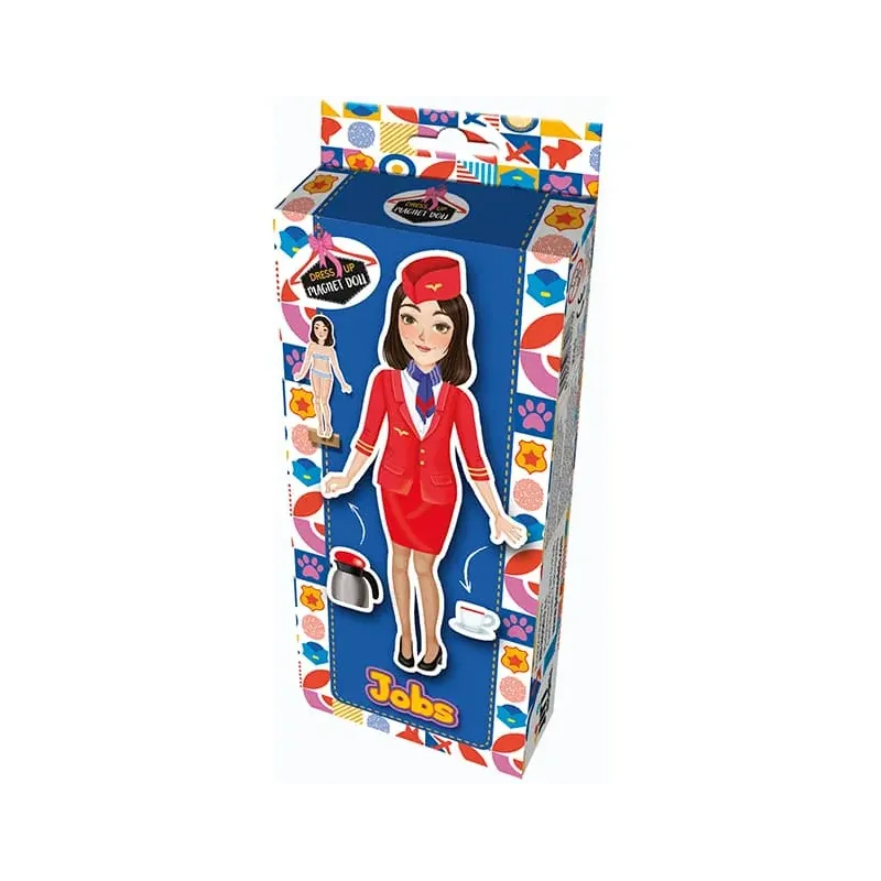 Balenie obsahuje obliekaciu postavičku, 3 hárky magnetických častí oblečenia, topánok a doplnkov a drevený podstavec.