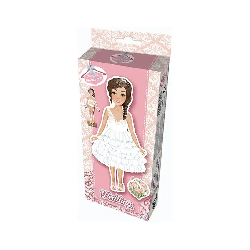 Balenie obsahuje obliekaciu postavičku, 3 hárky magnetických častí oblečenia, topánok a doplnkov a drevený podstavec.