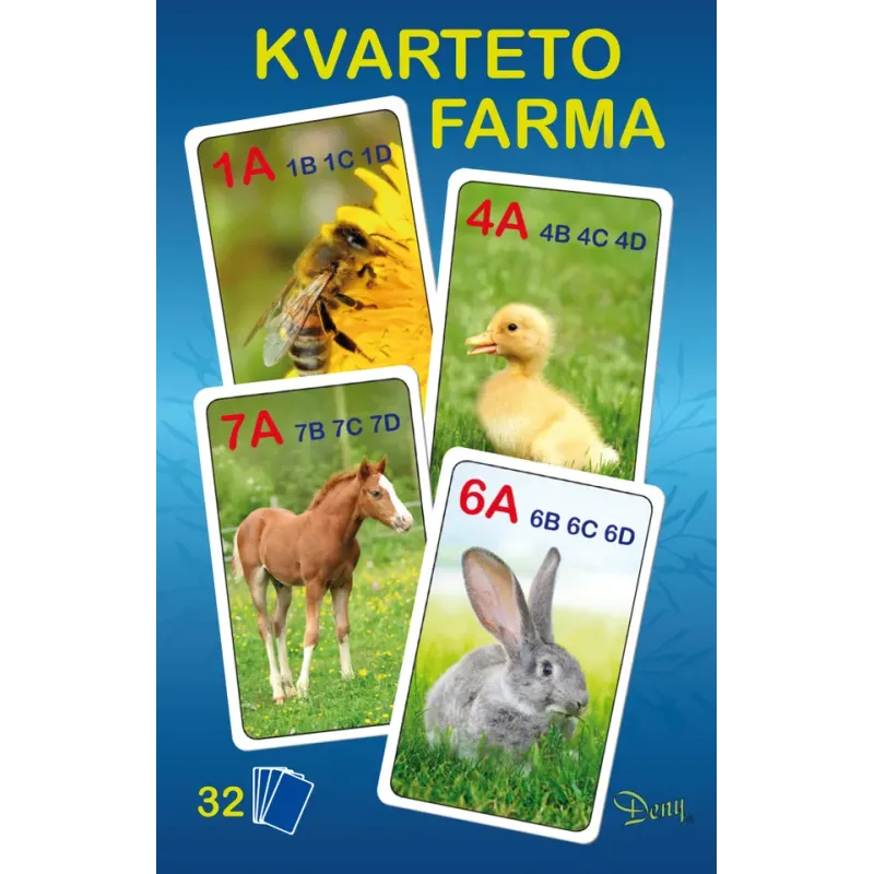 Klasická kartová hra kvarteto s motívom zvieratiek z domácej Farmy.