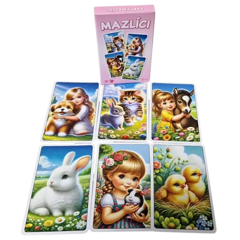 Hru vyhrá hráč, ktorý sa prvý zbaví všetkých svojich kariet a prehrá hráč, ktorému ostane posledná karta "Cierny Peter".PEXESO Hra pre 2 až 4 hráčov s 30 kartami, ktoré tvoria 15 dvojíc s rovnakými obrázkami.