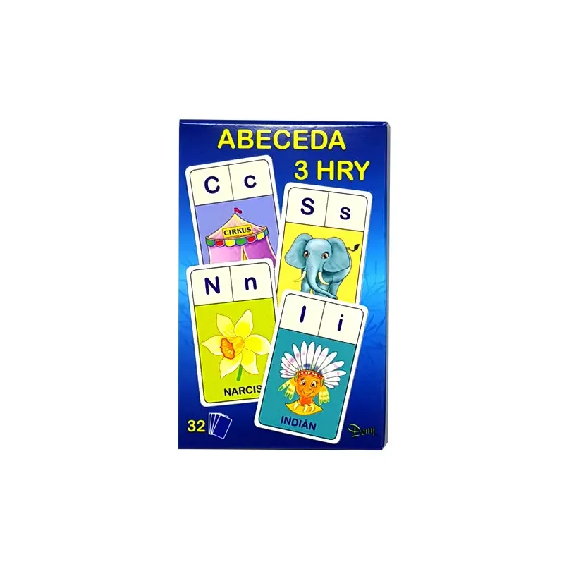 Karty ABECEDAHra sa skladá z 32 obrázkových kariet s ktorými sa dajú zahrať 3 rôzne hry: Abeceda, Hľadaj a Písmená.
