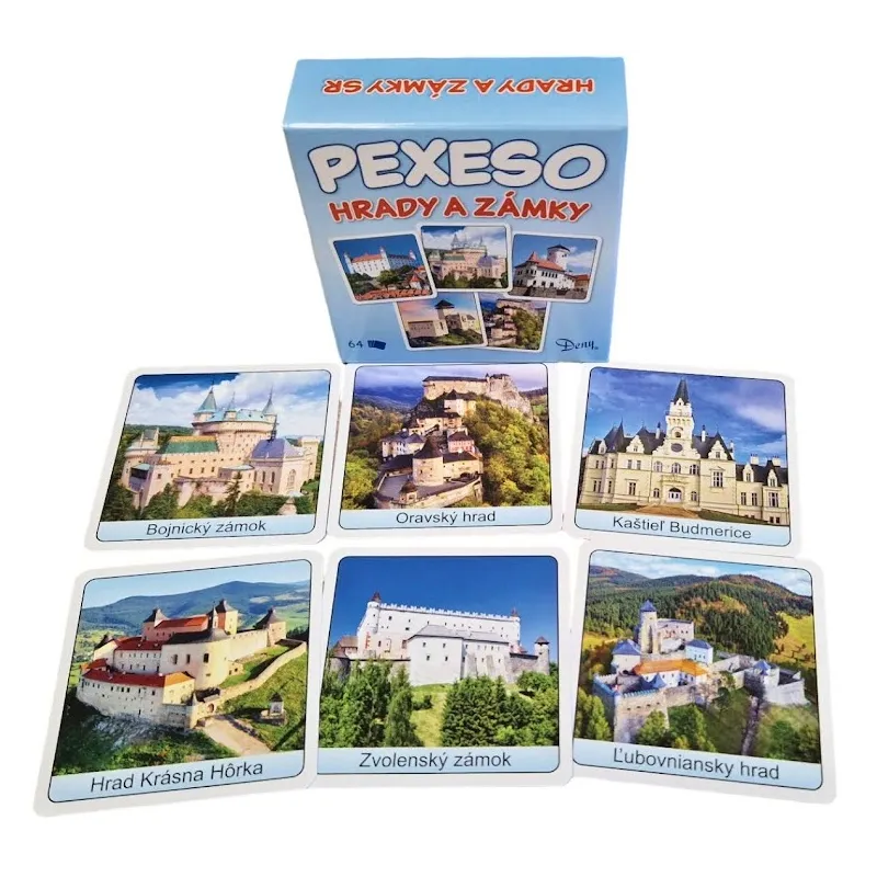 Pexeso hrady a zámky SKHra pre 2 až 4 hráčov so 64 kartami, ktoré tvoria 32 dvojíc s rovnakými obrázkami.