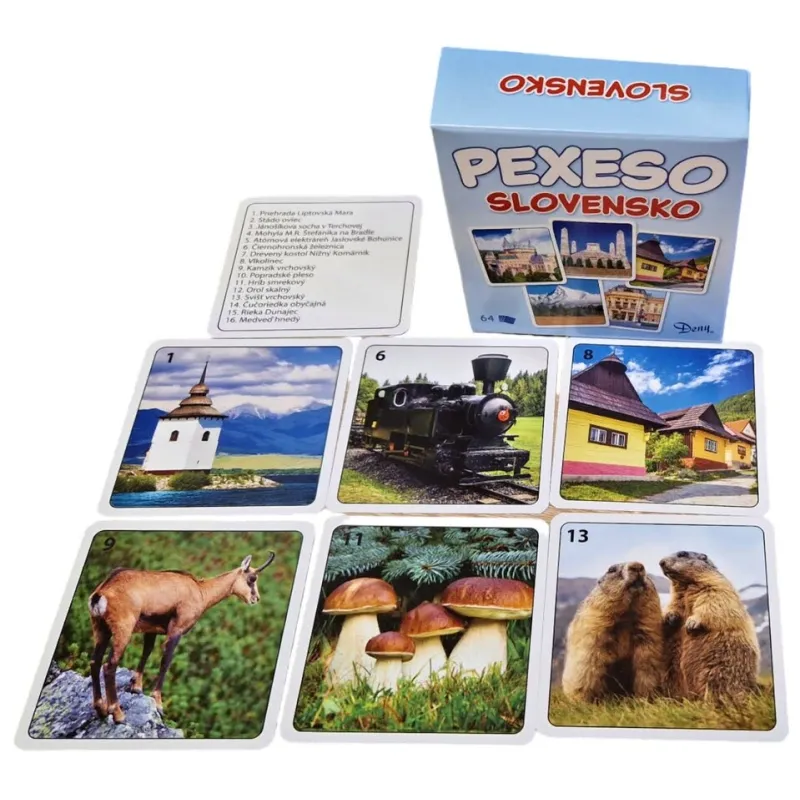 Hra pre 2 až 4 hráčov so 64 kartami, ktoré tvoria 32 dvojíc s rovnakými obrázkami.