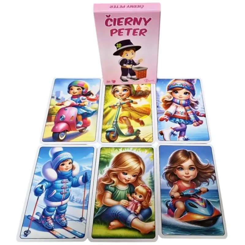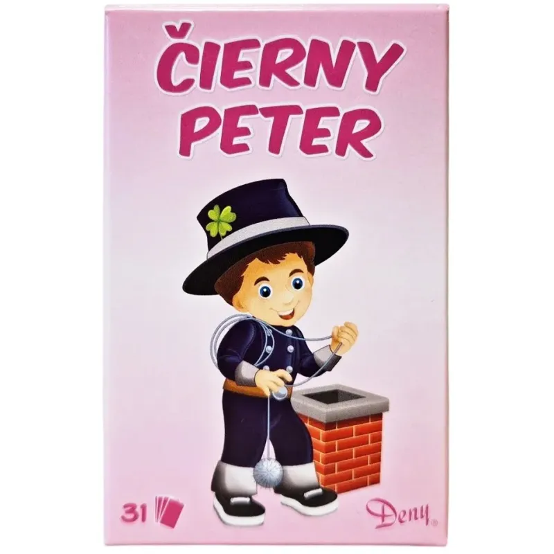 Prehráva ten, komu Čierny Peter zostane.ČIERNY PETER Hra pre 3 až 5 hráčov s 31 kartami, ktoré tvoria 15 dvojíc s rovnakými obrázkami a jednou samostatnou kartou,Cierny Peter".