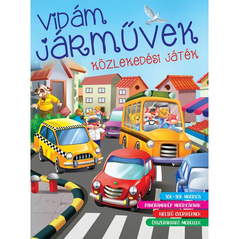 Vidám járművek ( Maďarská verzia )Találsz benne egy várospanorámát, melyek matricákkal díszíthetsz.