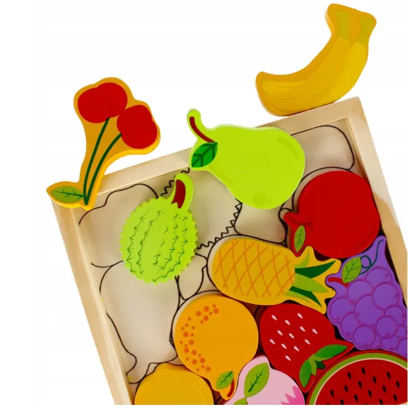 Hra spočíva v priraďovaní dreveného prvku do vhodného tvaru, v tomto prípade ide o ovocie.