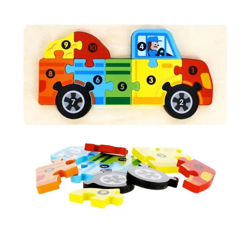 Drevené farebné puzzle autíčka.