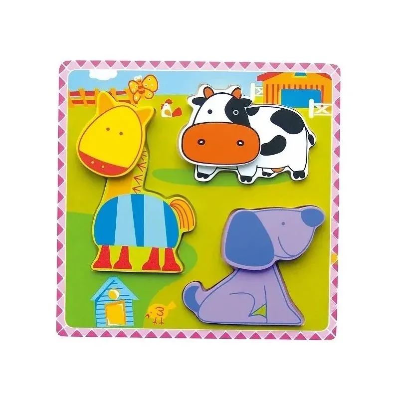 Vkladačky deti učia všímavosti, rozvíja predstavivosť a pamäť.Drevená podložka uľahčuje skladanie a vyfrézované okraje zabezpečujú, aby jednotlivé dieliky držali na svojich miestach.