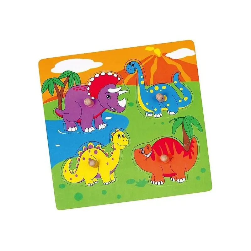 Drevená vkladačka s veľkými úchytkami a štyrmi vkladacími obrázkami .Pod každým dielikom sa nachádza obrázok, ktorý napomáha správnemu umiestneniu.