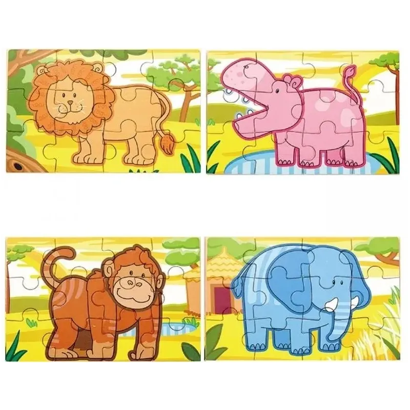 Drevená súprava obsahujúca 4 jednotlivé puzzle .