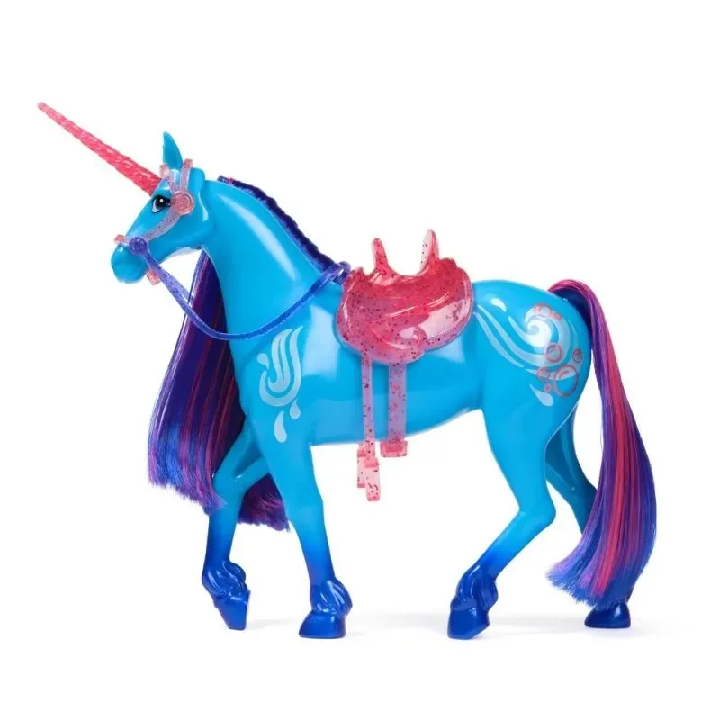 River disponuje krásnymi detailmi, perleťovými znakmi vodnej mágie na boku, majestátnym trblietavým rohom, farebnou hrivou a chvostom, odnímateľnou uzdou a sedlom pre ešte viac zábavy.
