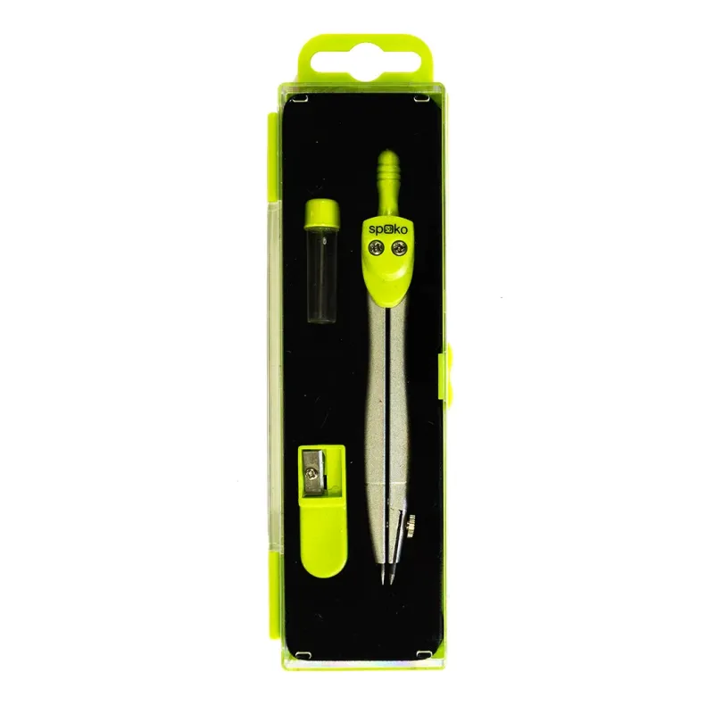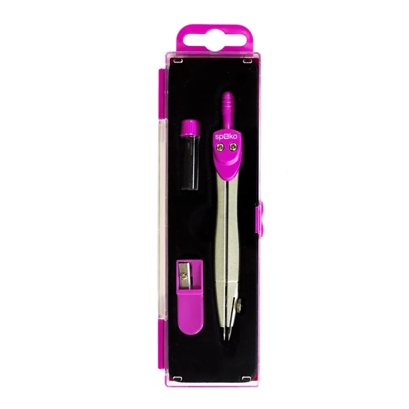 Jednoduché kovové kružidlo v atraktívnych farbách, vhodné doškolského peračníka. Výhodné balenie s náhradnými tuhami a strúhadlomv praktickej pevnej škatuľke. Ideálne pre prvý stupeň základnej školy.Manipulácia s tuhou pomocou skrutky. Tvarovaný úchop s drážkami napohodlné držanie.