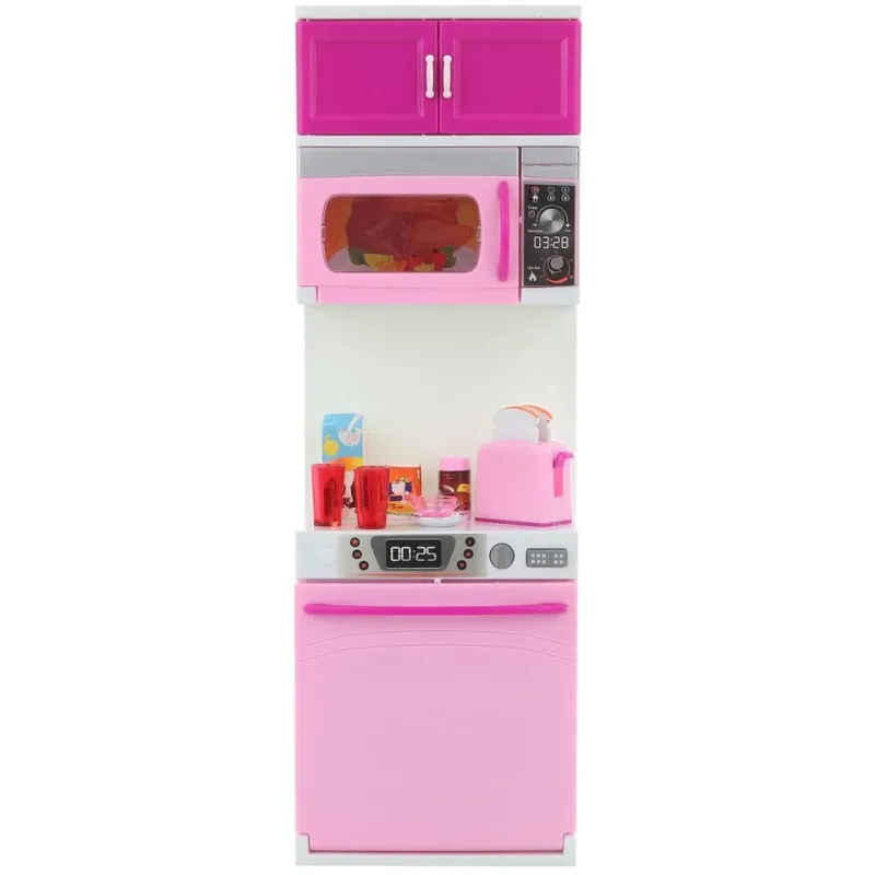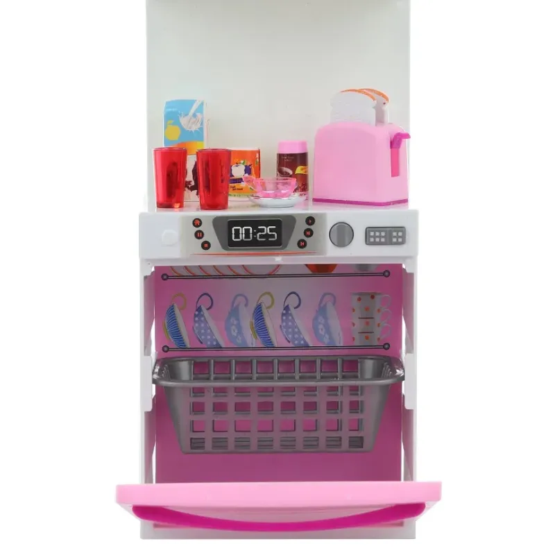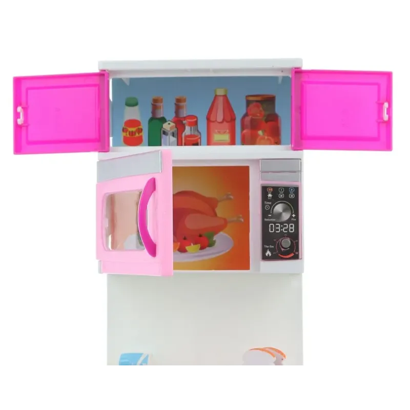 Ružový plastový kuchynský nábytok pre bábiky, ktorý by nemal chýbať v tvojej výbave.