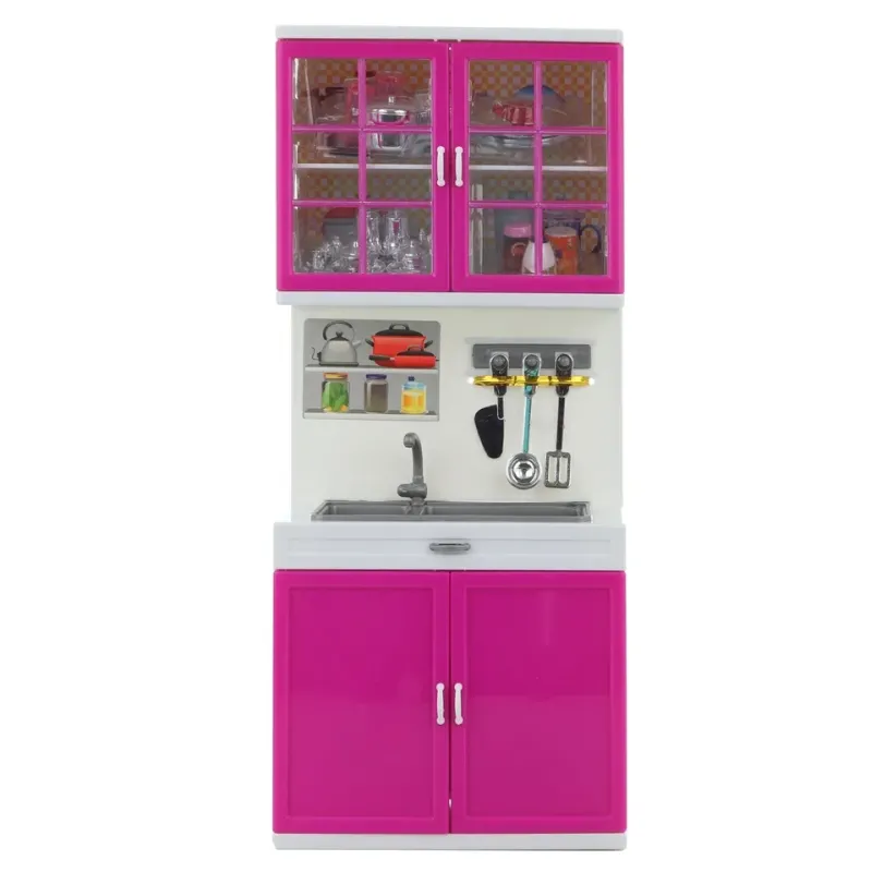 Ružový plastový kuchynský nábytok pre bábiky, ktorý by nemal chýbať v tvojej výbave.