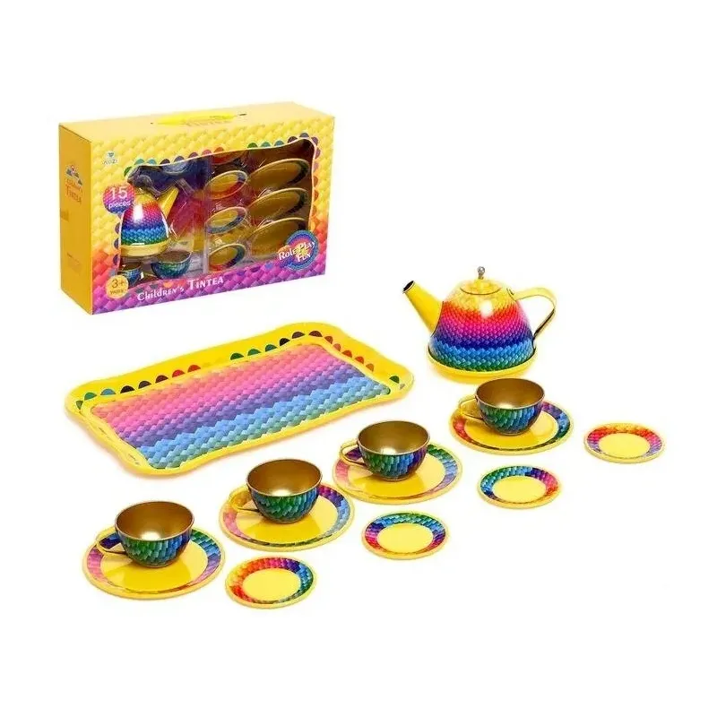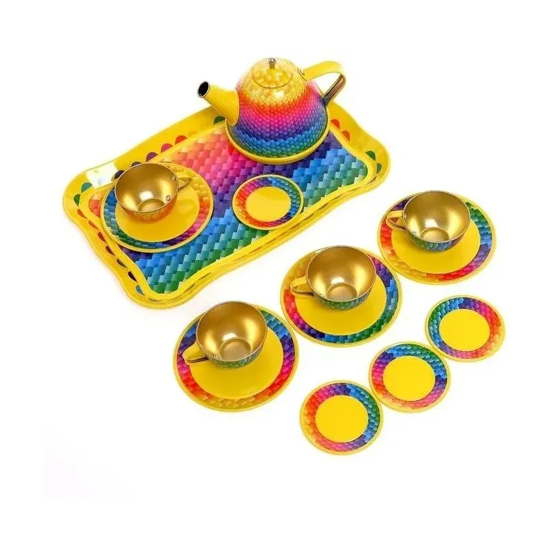 Obsahuje: tácku 24 cm, kanvicu 11 cm, 2x hrnček 6 cm, 4x tanierik 5,5 cm, 4x tanierik 7 cm.Vek: 3+