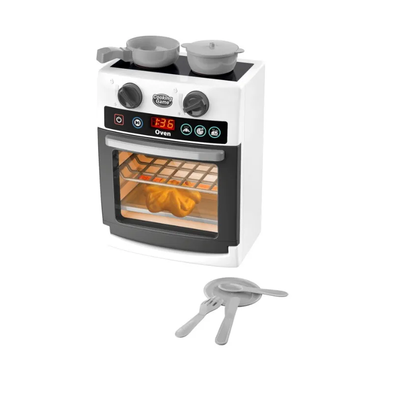 Detská rúra so svetelnými a zvukovými efektmi obsahuje riad a kura.