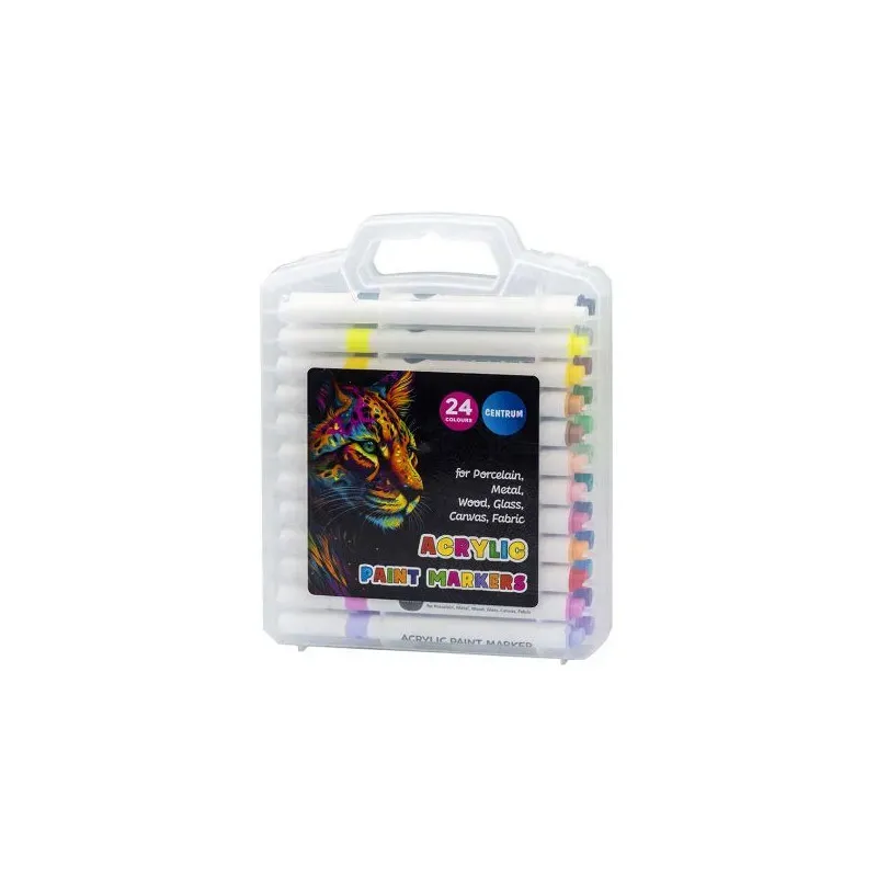 Sada 24 akrylových fixiek Centrum je ideálna pre umelcov všetkýchúrovní. Tieto fixky sú vhodné na rôzne povrchy vrátane porcelánu, kovu,dreva, skla, plátna a textilu.
