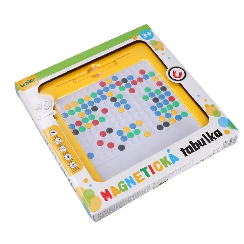 Pomocou priloženej magnetickej ceruzky sa umiestňujú farebné magnetky na potrebné miesta a tvorí sa tak ľubovoľný obrázok.