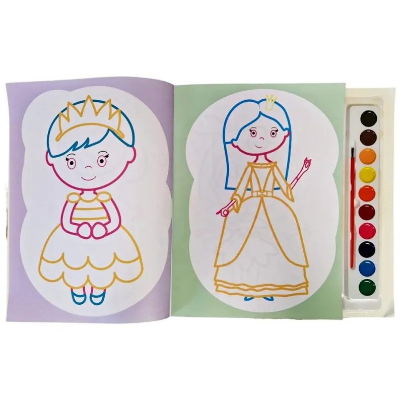 Malý maliarik princezné omaľovánka so štetcom a farbami