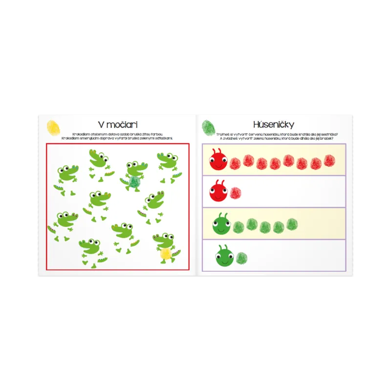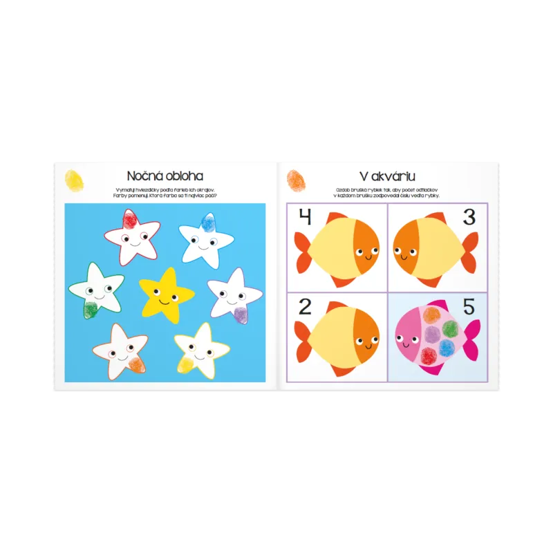 Maľované odtlačky vezmú deti na úchvatnú cestu farebnej fantázie – bez potreby štetcov, fixiek či farbičiek. Ide o tvorivú zábavu, pri ktorej je povolené sa trošku zašpiniť. Každú sadu tvorí pracovný zošit a šesť farieb.