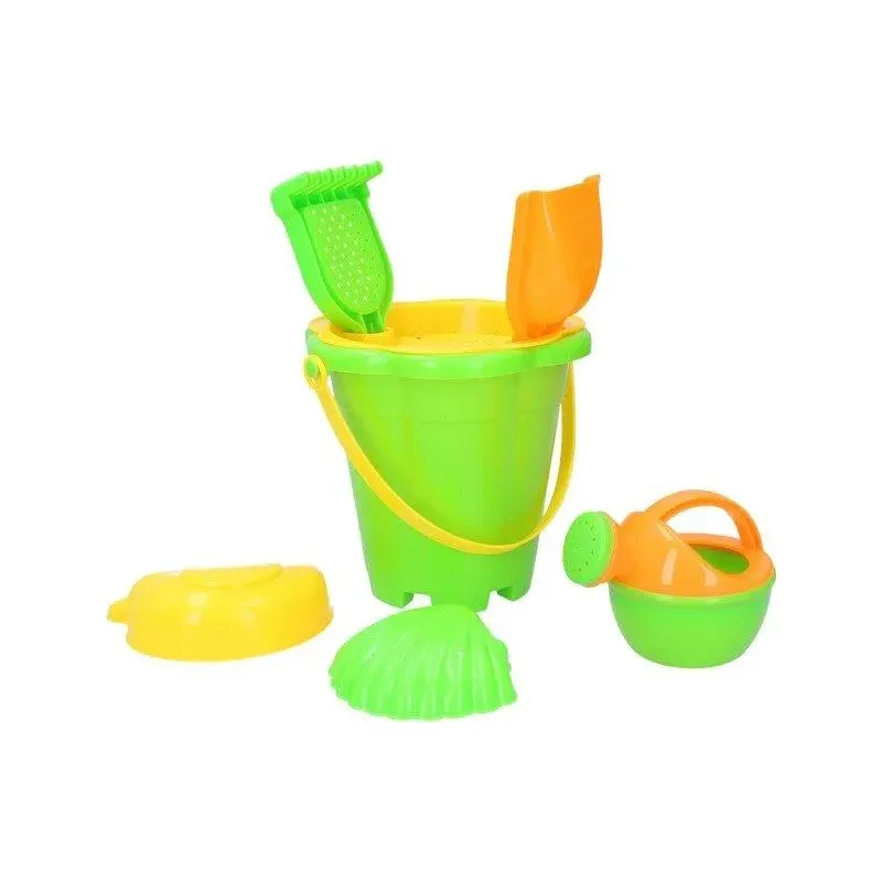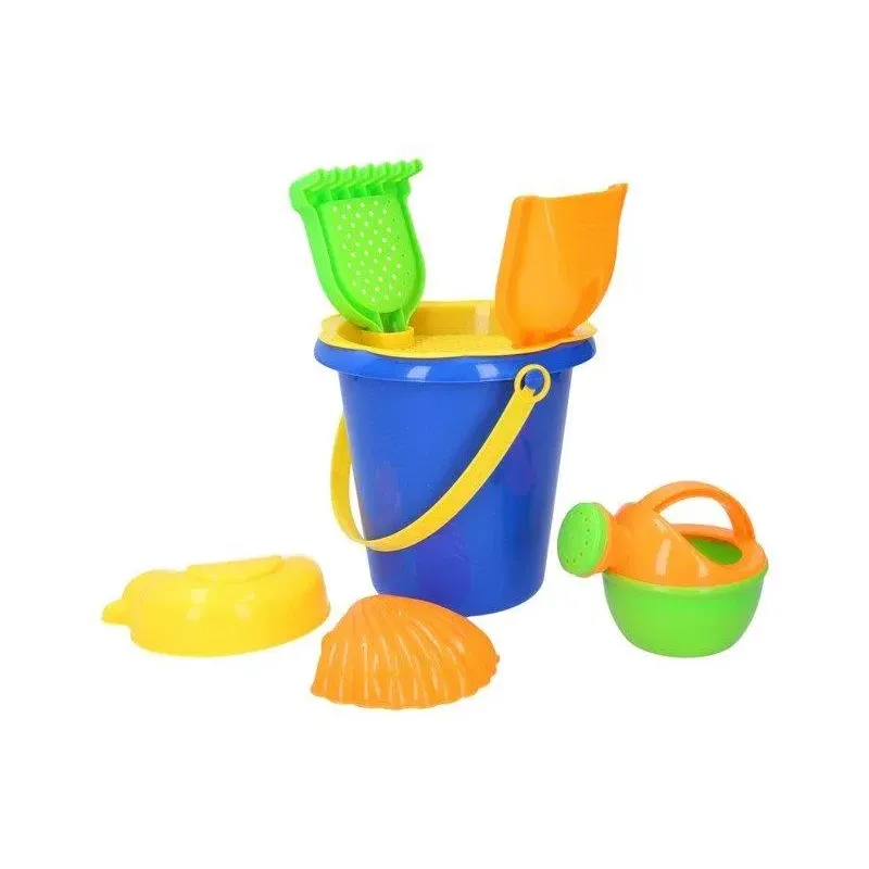 Sada obsahuje: kýblik, sitko, lopatku, hrabličky, krhličku a 2 formičky