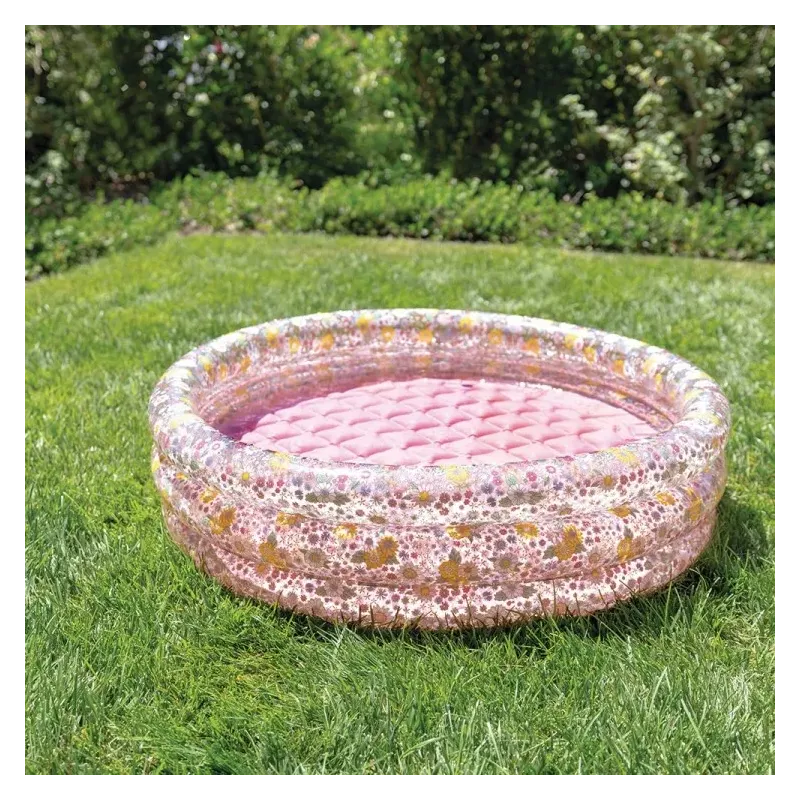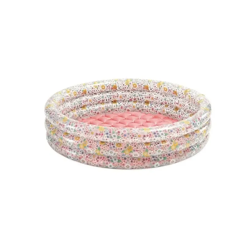 Farebný trojkomorový nafukovací bazén, ktorý sa hodí na záhradu, kde urobí deťom určite veľkú radosť.