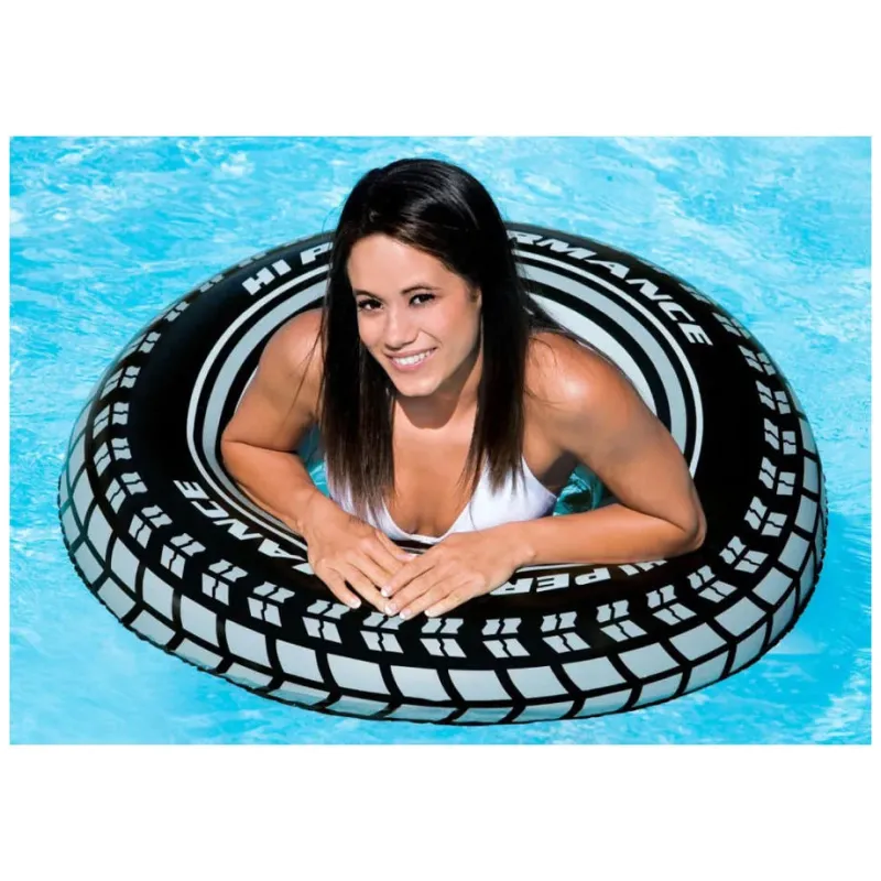Detské plávacie koleso pripomínajúce veľkú pneumatiku, poslúži vďaka svojej veľkosti deťom aj dospelým.