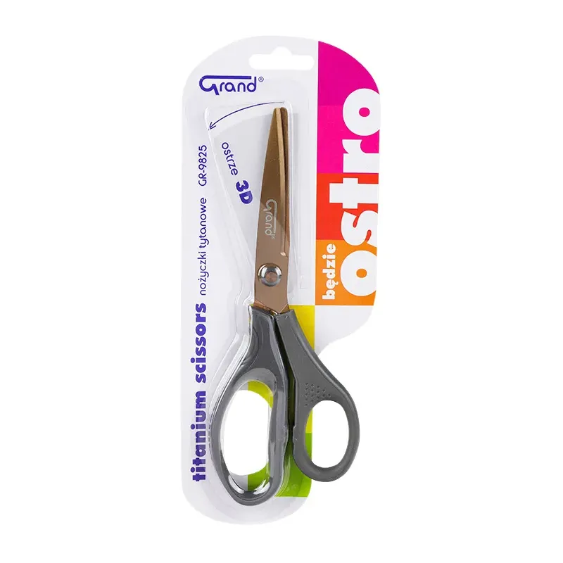 Titánové nožnice Grand GR-9825 sa osvedčia nielen v kancelárii. Je tovynikajúca pomôcka v domácnosti, pri výtvarných prácach a užitočnápomôcka pre trochu starších žiakov.