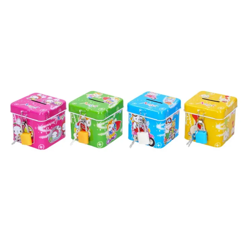 Plechová pokladnička na zámok s detským motívom sa postará, aby sa tvoje peniažky nikam nezakotúľali a boli v bezpečí!