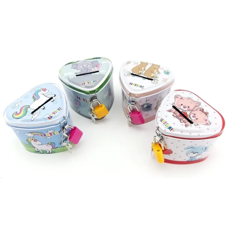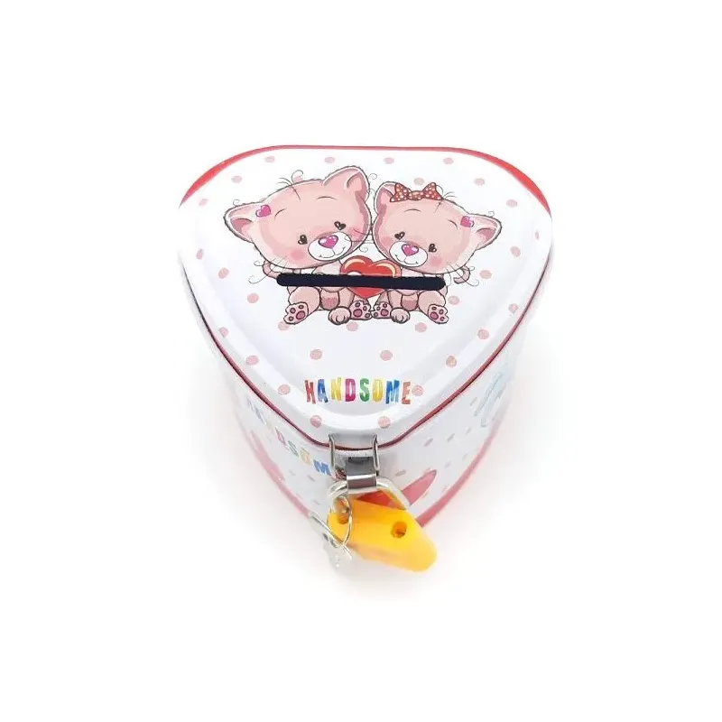 Plechová pokladnička s motívom Handsome sa postará, aby sa tvoje peniažky nikam nezakotuľali a boli v bezpečí.