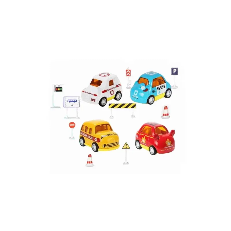 Balenie obsahuje 4 autíčka - školský autobus, policia, hacič, sanitka a dopravné značky.